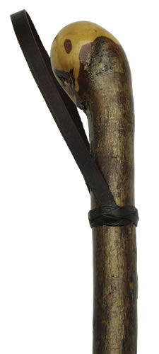 Men's straight imported Hazelwood walking stick with knob top and leather loop; approximately 36" long. Replacement tip #8039808. Imported from Germany.
