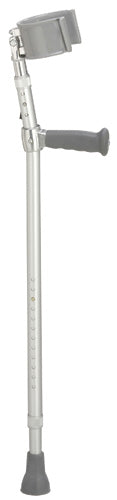 Featherweight adjustable aluminum forearm crutch made of aluminum casting for extra strength with vinyl front opening cuffs.